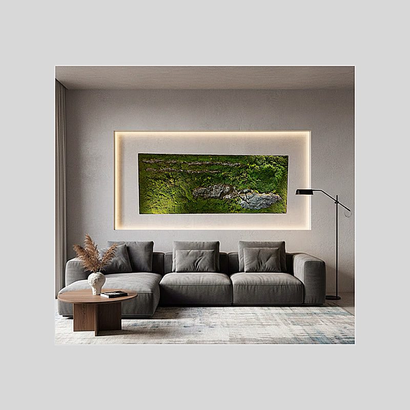 – Musgo finlandés estabilizado: seleccionado en tonos verdes y matices amarillos. El musgo finlandés se caracteriza por su textura suave y esponjosa, su capacidad de mantener el color natural durante años y su resistencia sin necesidad de riego ni cuidados.